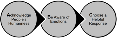 - A is for Acknowledge People’s Humanness. The person you are interacting with is a person with flaws, feelings, goals, and ideas just like you. Always be cognizant of the fact that no matter how they are acting, that is not the sum of who they are. We all have icebergs under the surface containing problems, fears, regrets, and the list goes on. As the old saying goes, “be kind for everyone you meet is fighting a battle you know nothing about.”