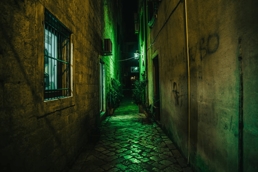 But dark alleys? No. Dark alleys are scary. What’s around the corner? Who knows? It’s scary.